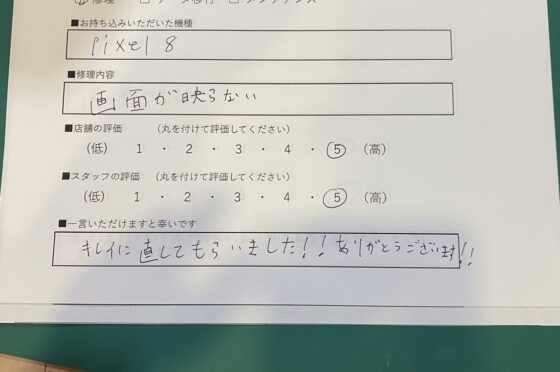 Pixelの充電口メンテナンスをご依頼頂いたお客様からお声を頂きました!!