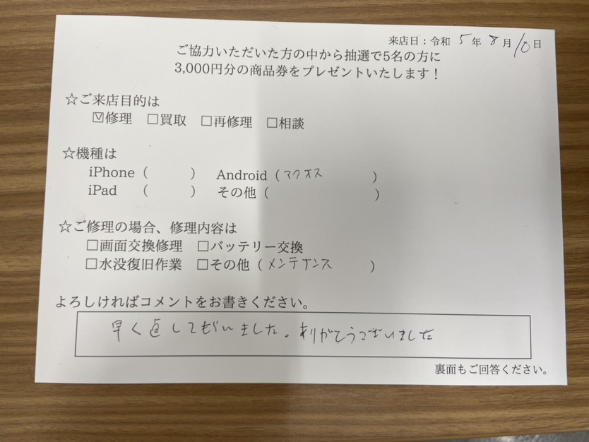 スマホスピタル名古屋駅前 AQUOS wishのメンテナンスを受けた客様よりお声を頂きました。