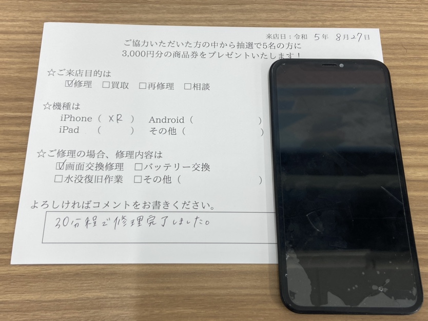 スマホスピタル名古屋駅前 iPhoneXRの画面交換でご依頼されたお客様よりお声を頂きました。
