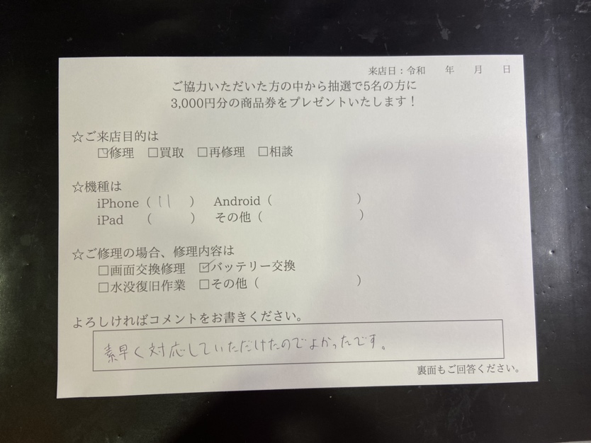 スマホスピタル名古屋駅前 iPhone11のバッテリー交換されたお客様のお声を頂きました。