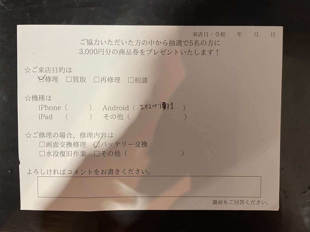 スマホスピタル名古屋駅前 Xperia1のバッテリー交換でご依頼されたお客様よりお声を頂きました。