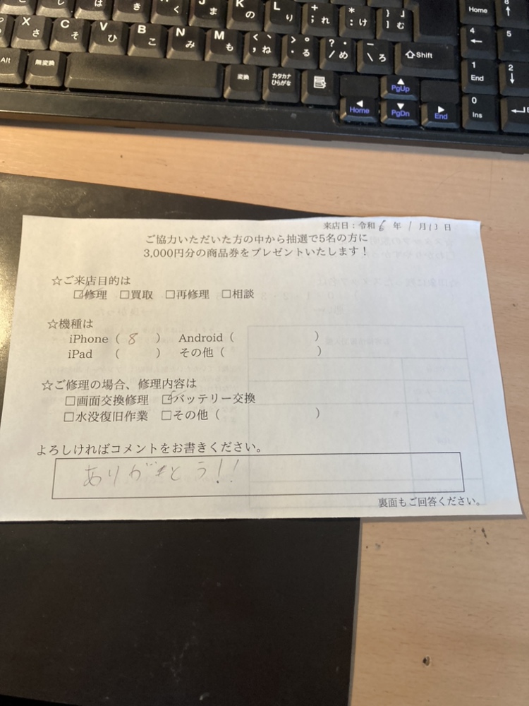 スマホスピタル名古屋駅前 iPhone8のバッテリー交換修理でご依頼されたお客様よりお声を頂きました。