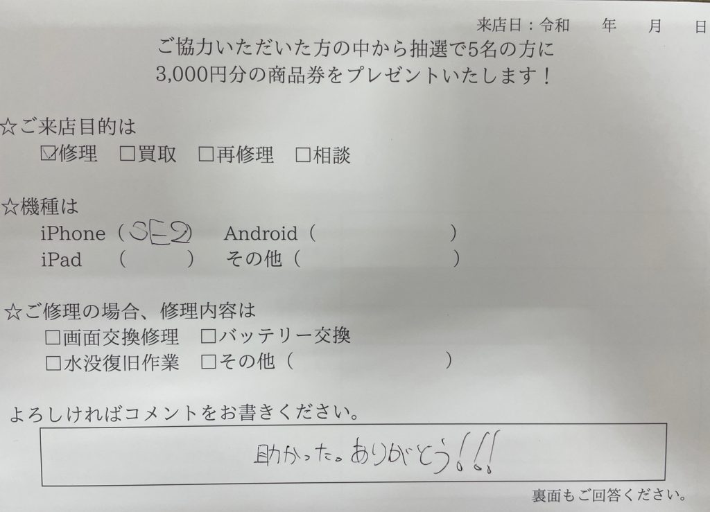 スマホスピタル名古屋駅前 Redmi A2の初期設定をご依頼頂いたお客様からお声を頂きました。