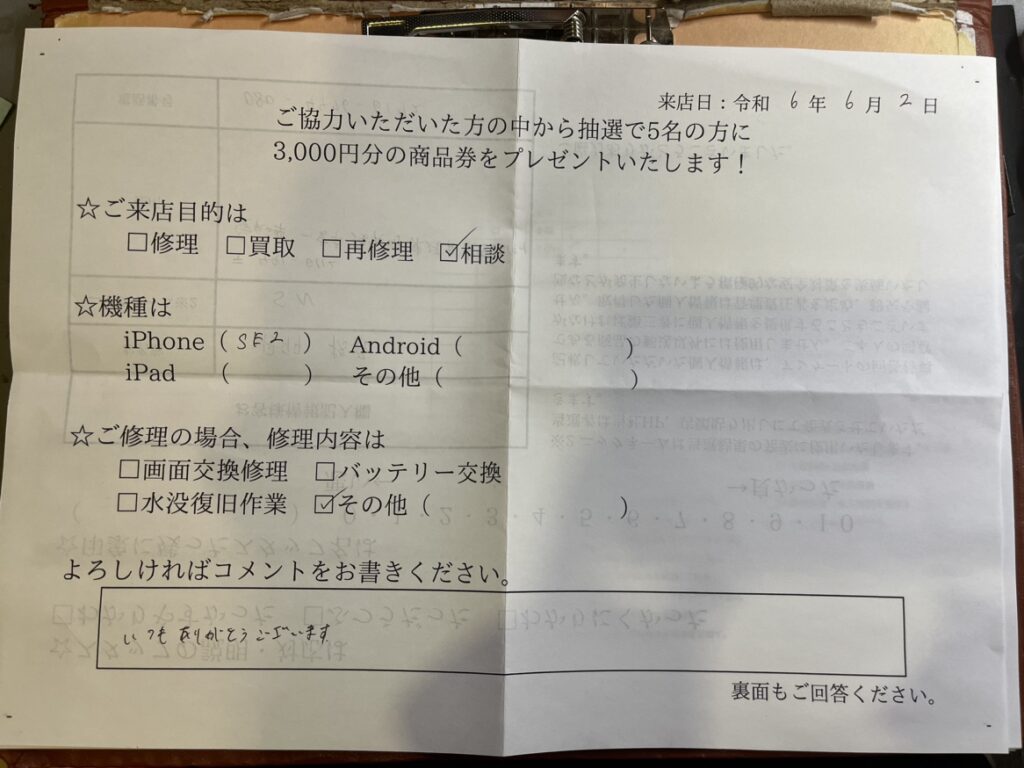 スマホスピタル名古屋駅前 iphoneSE2の画面交換修理をご相談頂いたお客様からお声を頂きました。