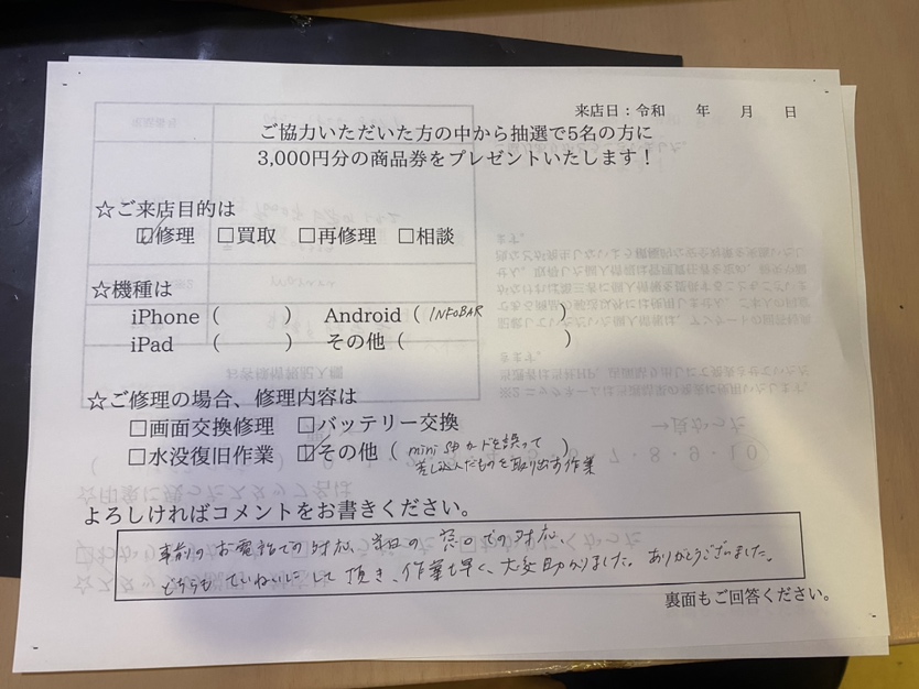 スマホスピタル名古屋駅前 miniSDカードを間違って差し込んでしまったとの事で相談していただきました!! 機種:INFOBAR