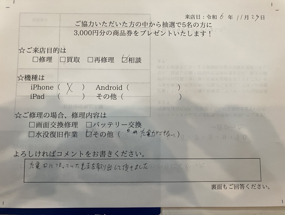 スマホスピタル名古屋駅前 iPhoneXの充電口が奥まで刺さらないとご依頼頂いたお客様からお声を頂きました。