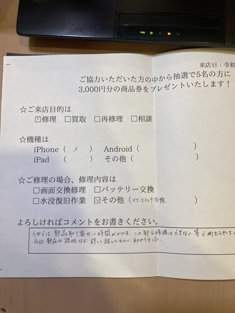 スマホスピタル名古屋駅前 iPhoneXマナースイッチ交換でご来店されたお客様からお声を頂きました