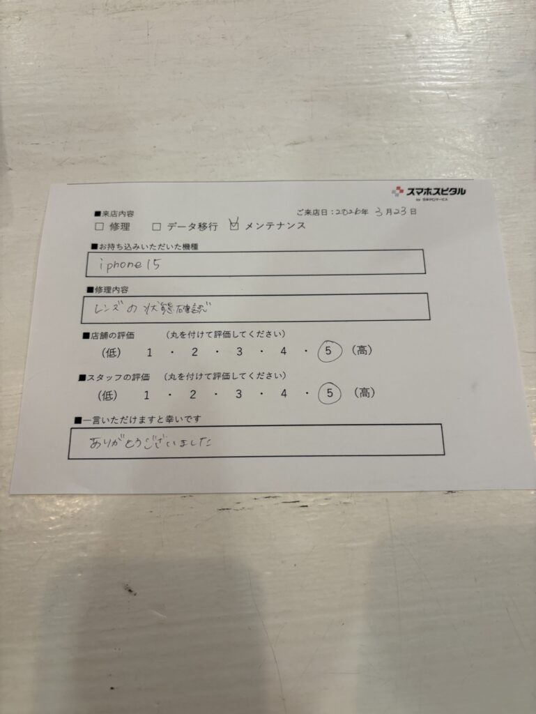 スマホスピタル名古屋駅前 iPhone15のメンテナンスをご対応させていただたお客様からお声をいただきました!