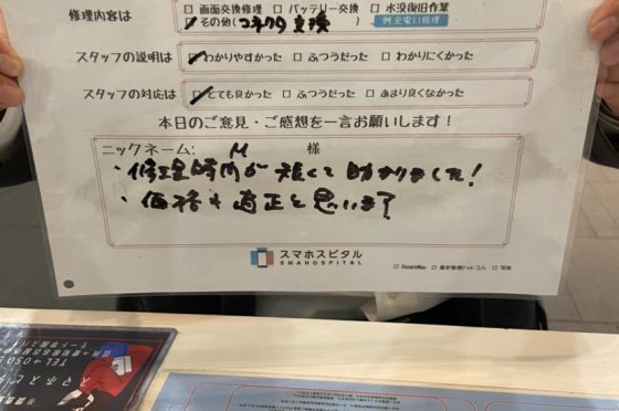 弊社の修理サービスをご利用いただいきましたお客様の声です。