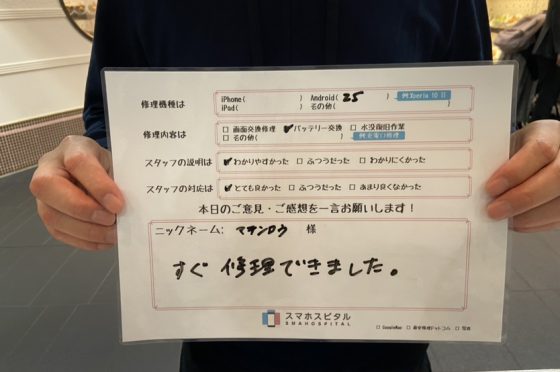 XperiaZ5のバッテリー交換でお客様の声をいただきました!