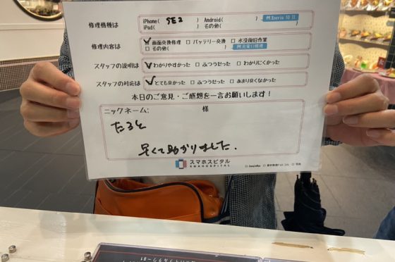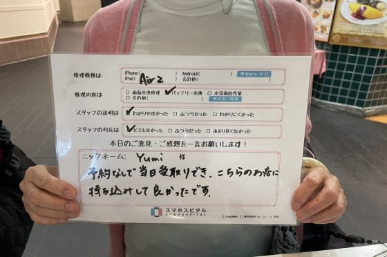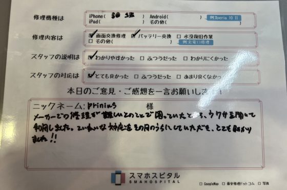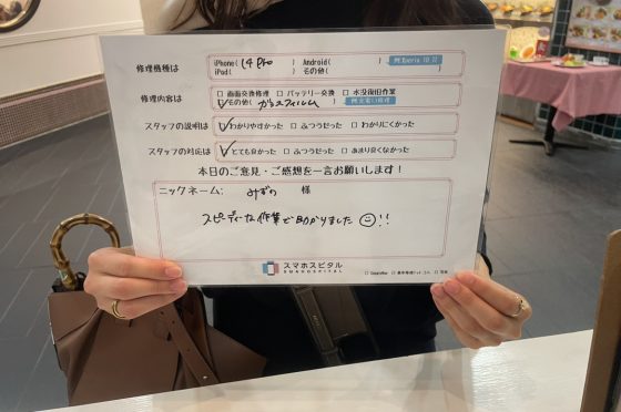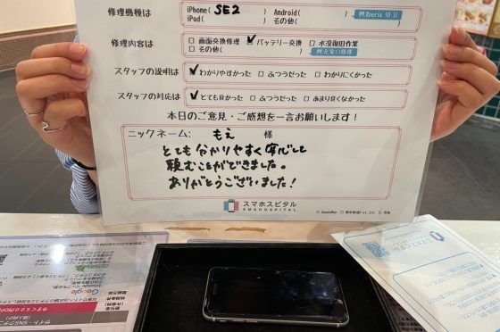 iPhoneSE2バッテリー交換にてお客様の声を頂きました。