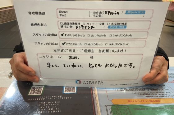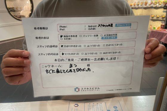 Xperia XZsのバッテリー交換のお客様にお声を頂きました。