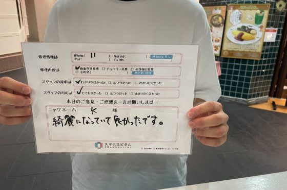 iPhone11の画面修理にてお客様の声を頂きました。part2