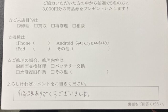 - 郵送いただいた端末を修理