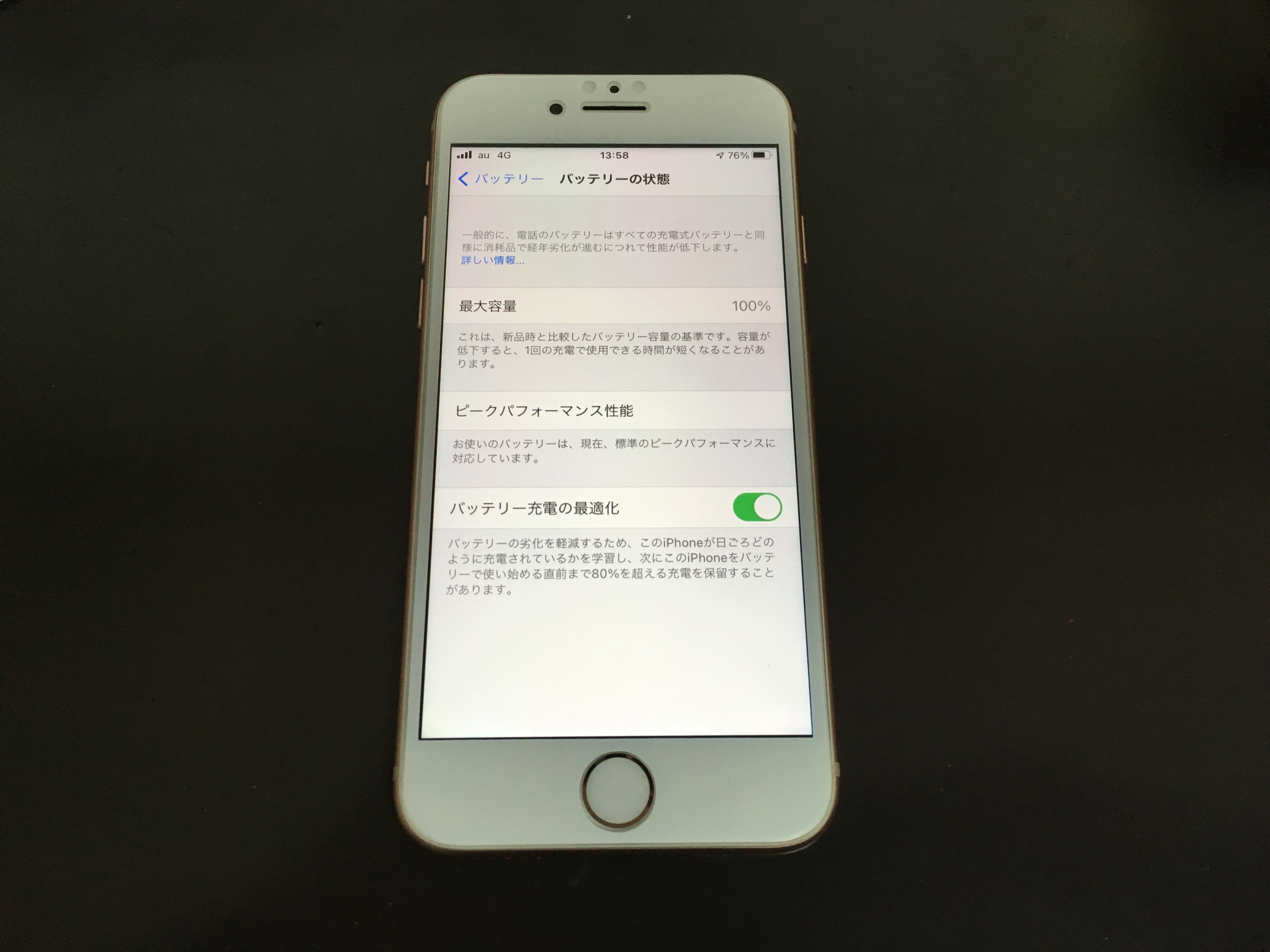 バッテリー最大容量は100%へ改善されております。もちろんデータはそのままで修理完了です!