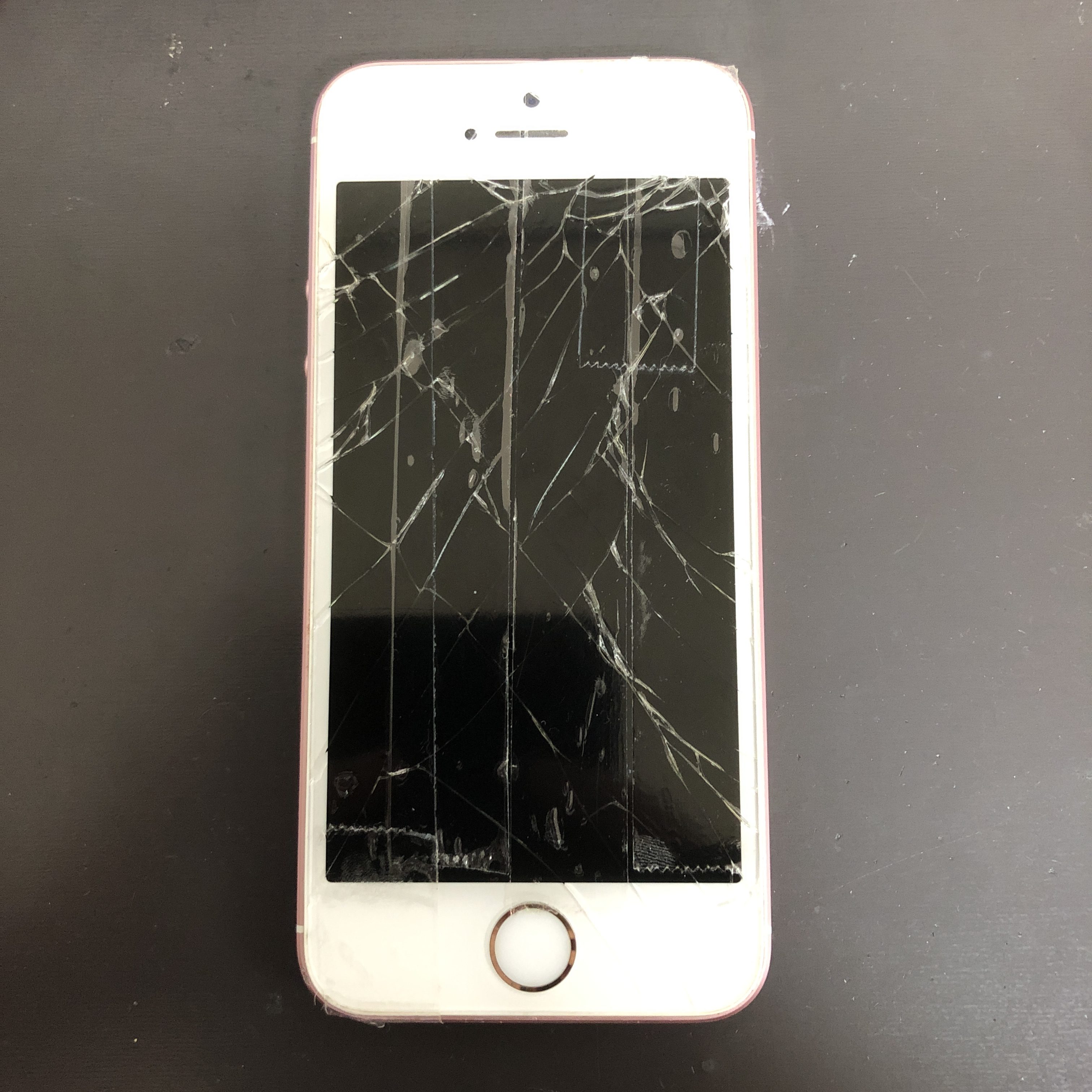 iPhoneSEの画面がこまかーく割れてしまったとのことで当店にご依頼をいただきました。