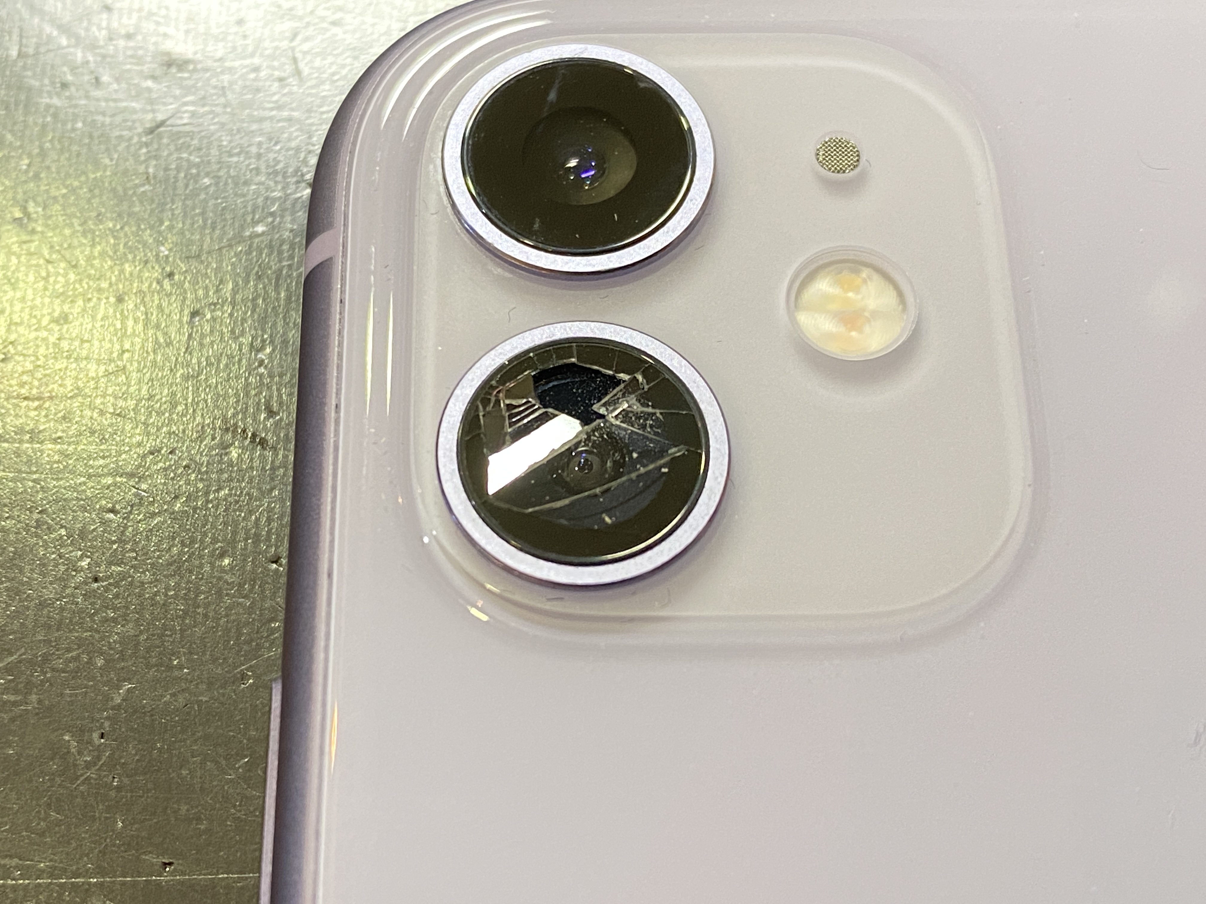 【2023/05/28更新】iPhone11バックカメラレンズに穴が開いてしまったと修理のご依頼をいただきました。