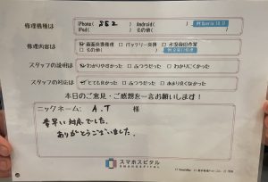 スマホスピタル名古屋金山 iPhoneSE2画面交換修理でお客様の声をいただきました!