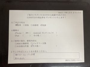 スマホスピタル名古屋金山 GalaxyS21 5Gの水没復旧修理をしたお客様よりお声を頂きました。