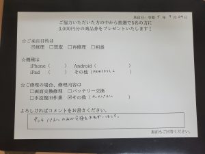 iPhone11の画面交換修理のお客様よりお声をいただきました。