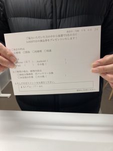 スマホスピタル名古屋金山 iPhoneSE3のバッテリー交換修理をしたお客様よりお声を頂きました。
