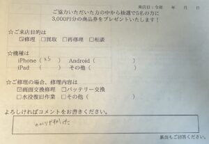 iPhone11の画面交換修理のお客様よりお声をいただきました。