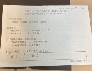 スマホスピタル名古屋金山 Galaxy S10 画面タッチ不可の症状でご依頼いただいたお客様からお声をいただきました!