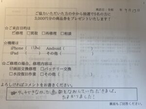 スマホスピタル名古屋金山 iPhone11Proのタッチ不可のお客様からお声をいただきました!