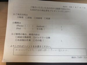 スマホスピタル名古屋金山 iPhone11のバッテリー交換のお客様からお声をいただきました!