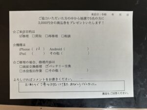 スマホスピタル名古屋金山 iPhone 13のバッテリー交換修理を依頼されたお客様からお声を頂きました。