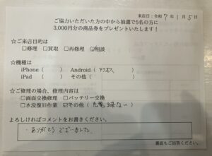 スマホスピタル名古屋金山 AQUOS sense6のメンテナンス修理を依頼されたお客様からお声を頂きました。