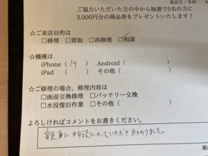 iphone14の相談に来られたお客様からお声をいただきました。