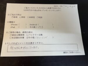 スマホスピタル名古屋金山 PS3のクリーニングをご依頼頂いたお客様からお声をいただきました。