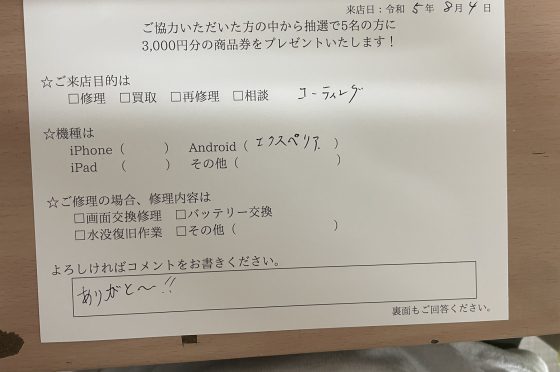 弊社の修理サービスをご利用いただいきましたお客様の声です。
