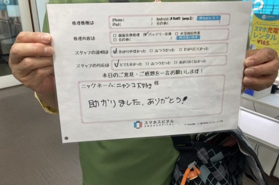 弊社の修理サービスをご利用いただいきましたお客様の声です。