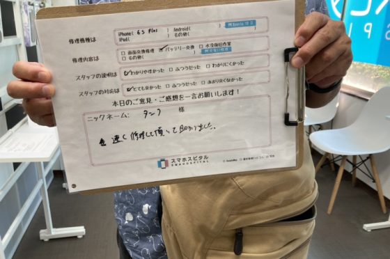 iPhone6SPlusのバッテリー交換でお客様の声をいただきました!