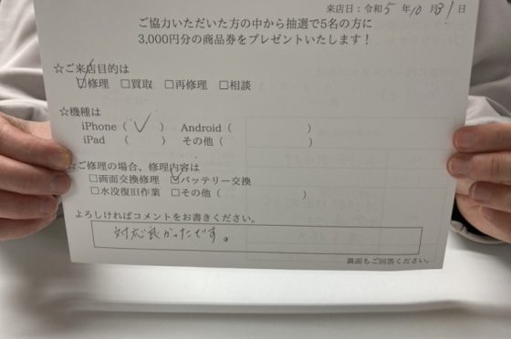 iPhoneSE2のバッテリー交換修理をしたお客様よりお声を頂きました。