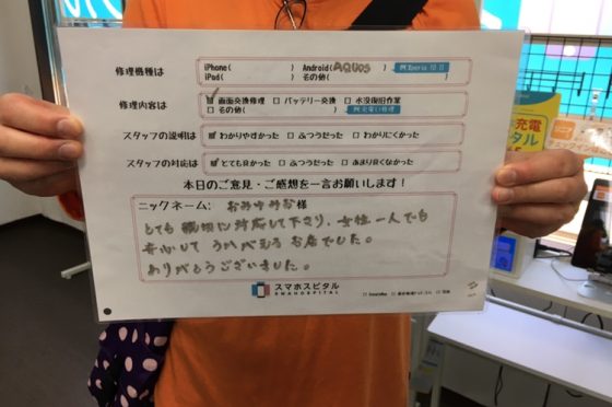 AQUOS Sense3 Lite の画面交換でお客様の声をいただきました!