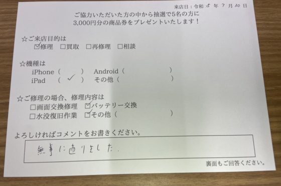 弊社の修理サービスをご利用いただいきましたお客様の声です。