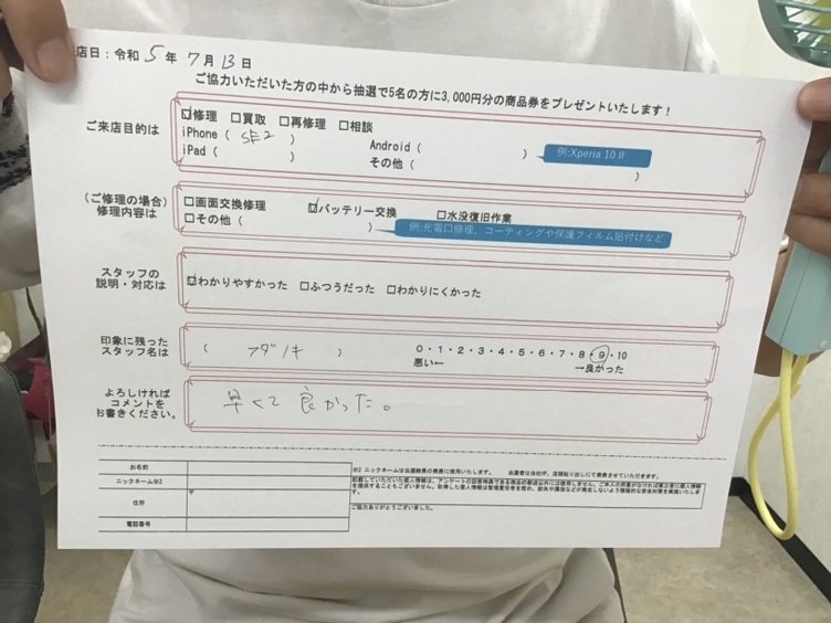【お客様の声】iPhoneSE2バッテリー交換をとても早くしてもらいました!