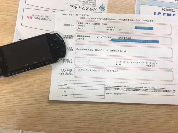 PSPの液晶交換修理致しました!