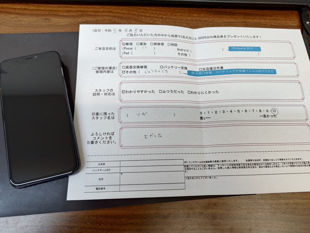 【お客様の声】iPhone7 のバッテリー交換をさせていただきました。