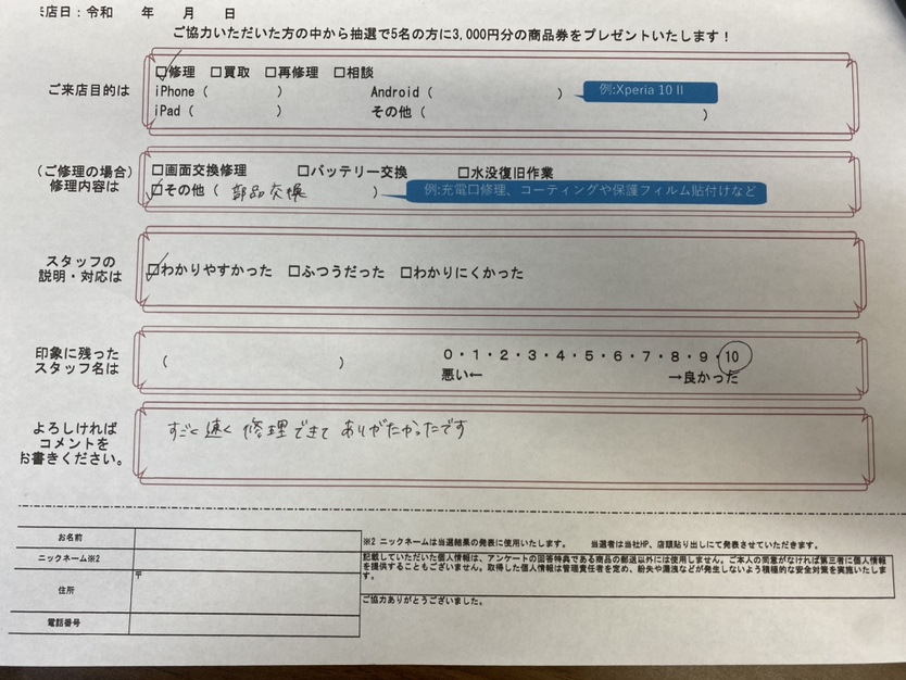 【お客様の声】iPhone7 のバッテリー交換をさせていただきました。
