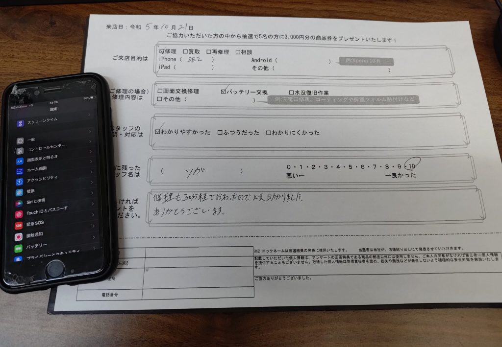 iPhoneSE第2世代のバッテリー交換でお客様の声頂きました!