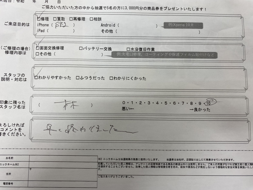 iPhoneSE2の画面交換を行いました!
