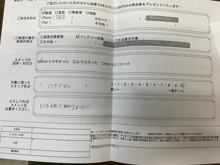 SE2のバッテリー交換を行いました!