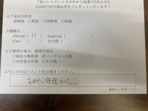 【お客様の声】iPhone7 のバッテリー交換をさせていただきました。
