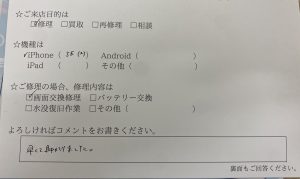 【お客様の声】iPhone7 のバッテリー交換をさせていただきました。