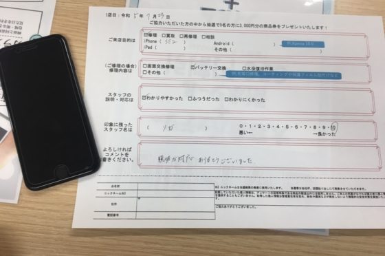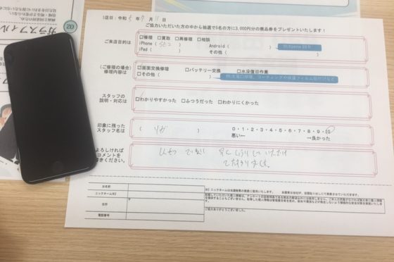 iPhoneSE第2世代のバッテリー交換にてお客様の声頂きました!