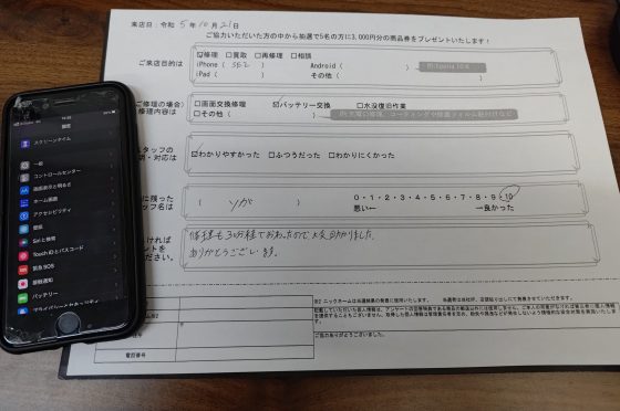 【お客様の声】iPhoneSE(第2世代)の画面交換修理でご来店のお客様
